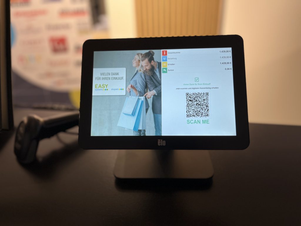 Die Belegausgabepflicht im Rahmen der Kassensicherungsverordnung 2020, kurz KassenSichV, hat im Einzelhandel für großen Unmut geführt. Das Drucken von Kassenbelegen bei Kleinstbeträgen ist kaum praktikabel und zudem wenig umweltfreundlich oder nachhaltig. Um die Papierflut einzudämmen und Ihren Kunden Sie können Ihren Kunden eine moderne und umweltfreundliche Art der Belegausgabe anbieten. In diesem Fall wird zum Ende des Kassiervorganges ein QR-Code auf dem Monitor angezeigt, welchen der Kunde einfach mit dem Smartphone scannt, wodurch er den Beleg auf sein Endgerät lädt. Der Ausdruck des Kassenbons ist dann nicht mehr erforderlich, kann aber per Tastendruck zusätzlich erfolgen.